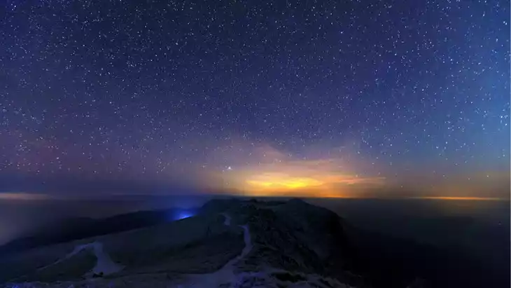 Standing on the top of Niubei Mountain and looking at the starry sky, the sky seems to be within reach, there is a sea of clouds under your feet, snow-capped mountains in the background, and you feel as if you are in the galaxy.