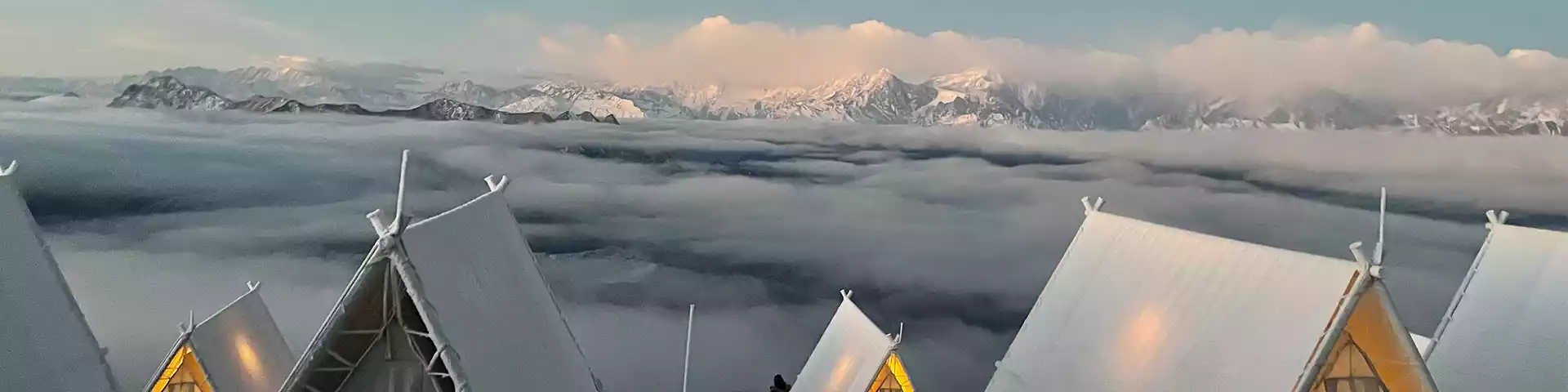 Mount Gongga, the king of Shu Mountains, stands at the highest point due west of Niubei Mountain. Standing on the top of Niubei Mountain, you can see the whole picture of the king of Shu Mountains. Niubei Mountain is one of the best places to view the sacred Mount Gongga.
