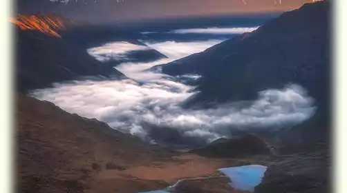Looking at the sea of clouds in front of you through the lens, the rising sun adds more splendor and brilliance to the sea of clouds, and the mountains that undulate with the rolling sea of clouds add a bit of charm to this beautiful scenery.