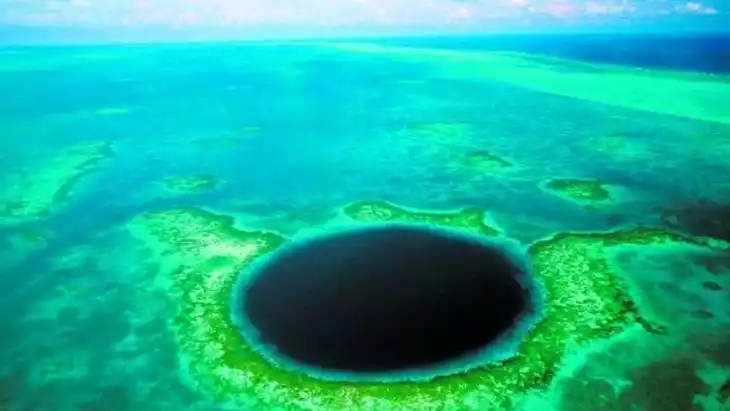 The Great Blue Hole is the largest underwater cave discovered in the world. Its entrance is nearly perfectly circular, and when viewed from above, it resembles a beautiful wreath.