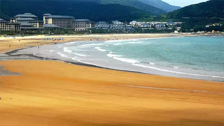 Lulan Qingsha is a beach in Daishan, named after its location at the foot of Lulan Mountain in the north of Daishan Island. At 3.6 kilometers long, it's the longest beach on the Jiangsu and Zhejiang coasts. The water reaches your chest only a few hundred meters away. At high tide, the waves are huge and resounding, while at low tide, the water is calmer. The ever-changing tides allow for a diverse array of marine life to be seen on the beach. There are always a few days a year when the weather is clear and calm, but only in the mornings does a thin, lingering mist blanket the beach, creating a truly beautiful scene. The waterlogged sand has a steely gray hue, and even cars can be driven on the beach. Enjoy a leisurely ride on a four-wheeled motorcycle.