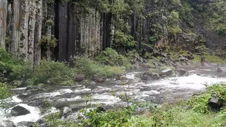 Most of the areas on both sides of the river are steep cliffs, and strange lava rock peaks stand in the canyons.