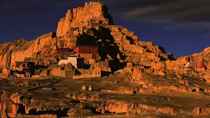 The mysterious Guge Kingdom vanished overnight over a thousand years ago, leaving behind only a deserted and mysterious ruin. Under the setting sun, the Guge ruins are majestic and weathered. We can only imagine its former glory through the few remaining murals and earthen buildings. The surrounding mountains and earthen forests, with their sharp outlines in the sunlight, outline a sense of silence and emptiness.