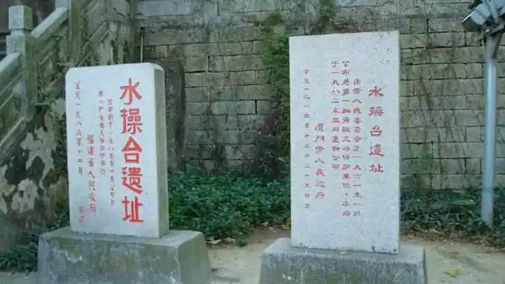 Climbing the steps, you'll first reach the Lotus Temple, where a giant stone carved into a hollow "tile" forms the hall. Beside the temple, a large stone is inscribed with the words "Gulang Cave Heaven" and "Lujiang First." Behind the temple are the "Lujiang Dragon Cave" and "Ancient Summer Cave," among other scenic spots. In between are the remains of Zheng Chenggong's Longtou Mountain Stronghold and Water Drill Platform, where poems praising him are inscribed by Cai Tingkai and Cai Yuanpei. Reaching the summit offers breathtaking views of the mountains and sea, including Xiamen, Gulangyu, Dadan, and Erdan Islands.