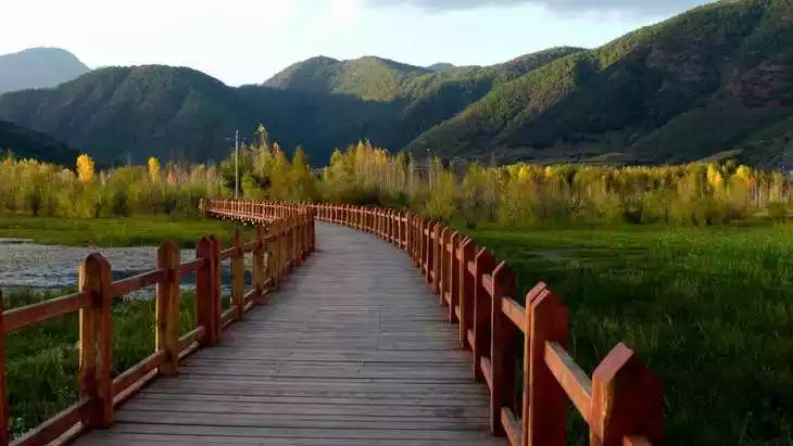 The main attractions of Caohai are the fresh and elegant emerald green lake and the Caohai Bridge across the water. This bridge was once the one that Mosuo boys had to cross when they were getting married, so it is also called the "Walking Marriage Bridge". Tourists can walk on the bridge and stroll closely among the emerald green reeds.