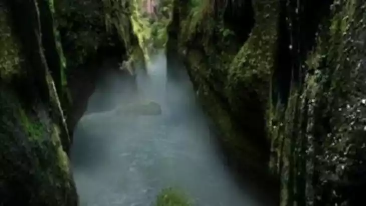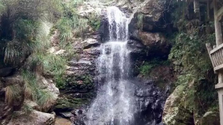 The Yixiantian Scenic Area, also known as Yizitian, is located in a deep canyon south of Erqu Creek at the southern tip of the Wuyi Mountain range. There, a massive rock, resembling a city wall, stands, named Fulingyan. The rock slopes outward, covering three adjacent caves. A fissure in the cliff's ceiling spans over 100 feet and is less than one meter wide. Leaning into a cave and gazing upward through the fissure, one can witness a breathtaking sight of a thin line of skylight. Key attractions in the Yixiantian Scenic Area include Yixiantian, Louge Rock, Lingxiao Peak, Shimen Rock, and Huxiao Rock. It is one of the few unique and captivating scenic spots in Wuyi Mountain.