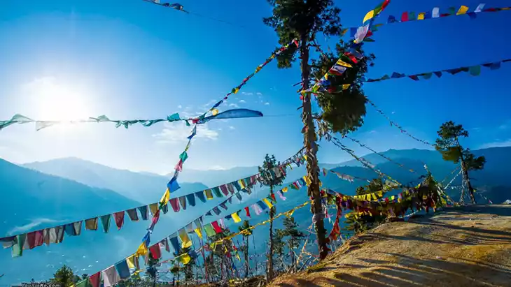 Bhutan's name, "Zhuyu," means "Land of the Thunder Dragon" in the local language. Tibetan Buddhism is the state religion of Bhutan, and the sight of colorful flags fluttering in the wind is a magnificent sight. These flags are actually prayer flags inscribed with Buddhist scriptures.