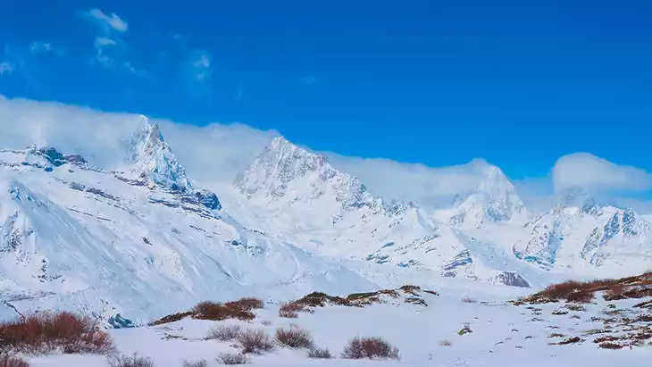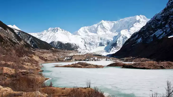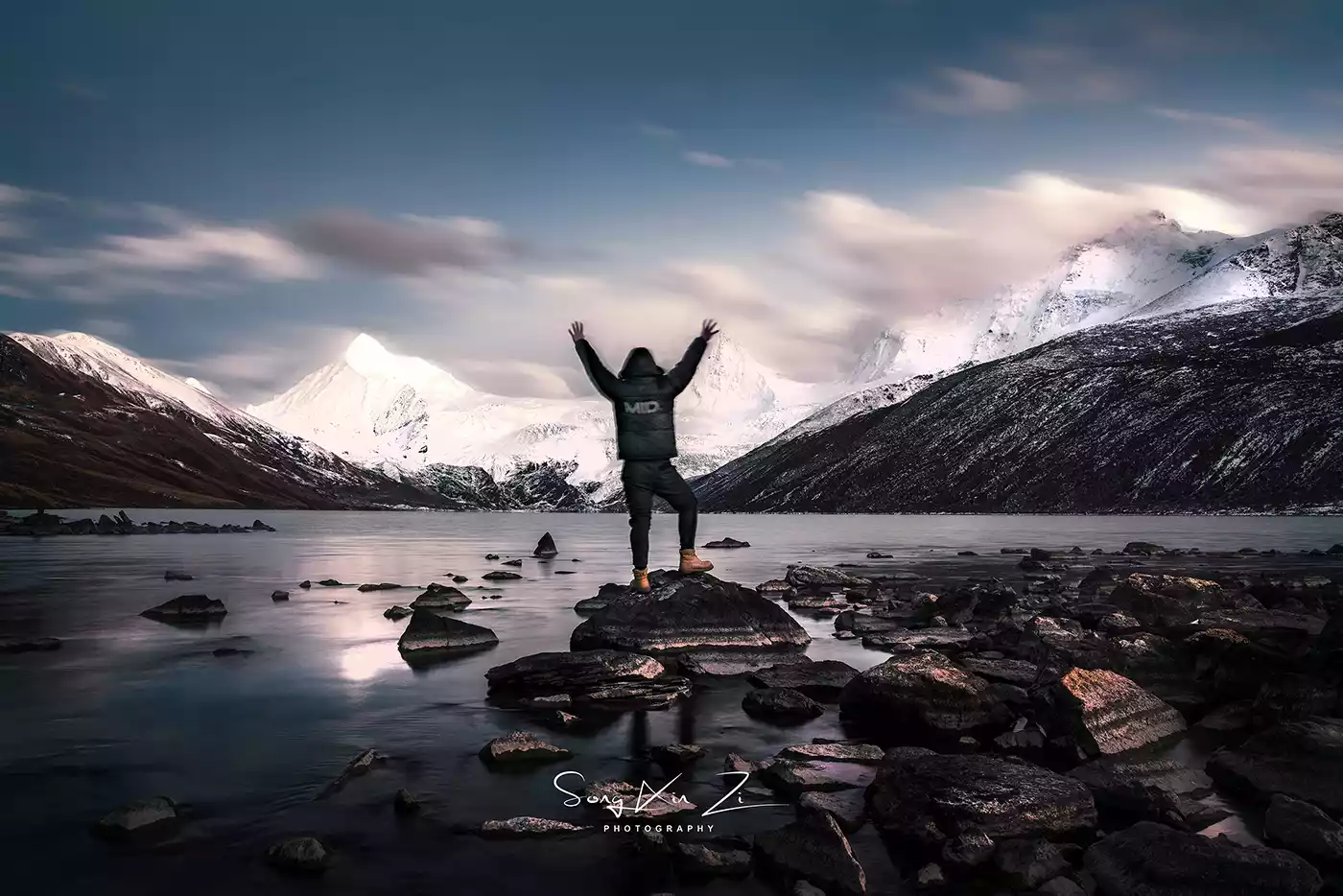 The crystal-clear waters of Basongcuo Lake reflect the surrounding snow-capped mountains. In spring, the lake blooms with flowers, and the snow-capped peaks are reflected in the lake, creating a breathtaking sight. In autumn, the mountains and forests are bathed in crimson, and the sky is azure. The fiery red maple leaves reflect the brilliant sunlight, reflected in the azure waters of the lake, creating a breathtaking spectacle.