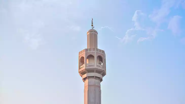 The Great Mosque, from a distance, stands magnificently in the desert, like a pearl in the desert. It is one of the most magnificent mosques.