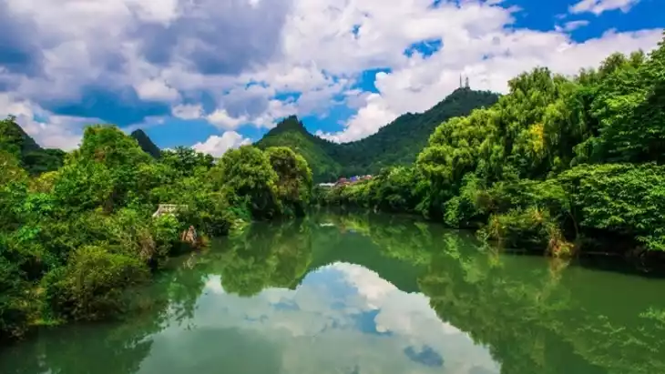 This pristine wonderland, a blend of mountains, water, forests, caves, lakes, and waterfalls, has earned the reputation of a "super bonsai." Located amidst peaks over 30 kilometers south of Libo County, the Xiaoqikong Scenic Area derives its name from the seven-arch bluestone bridge spanning the Xiangshui River. The scenic area, a blend of mountains, water, forests, caves, lakes, and waterfalls, is beautiful and tranquil, imbued with the rich customs of the Tujia and Yao ethnic groups.