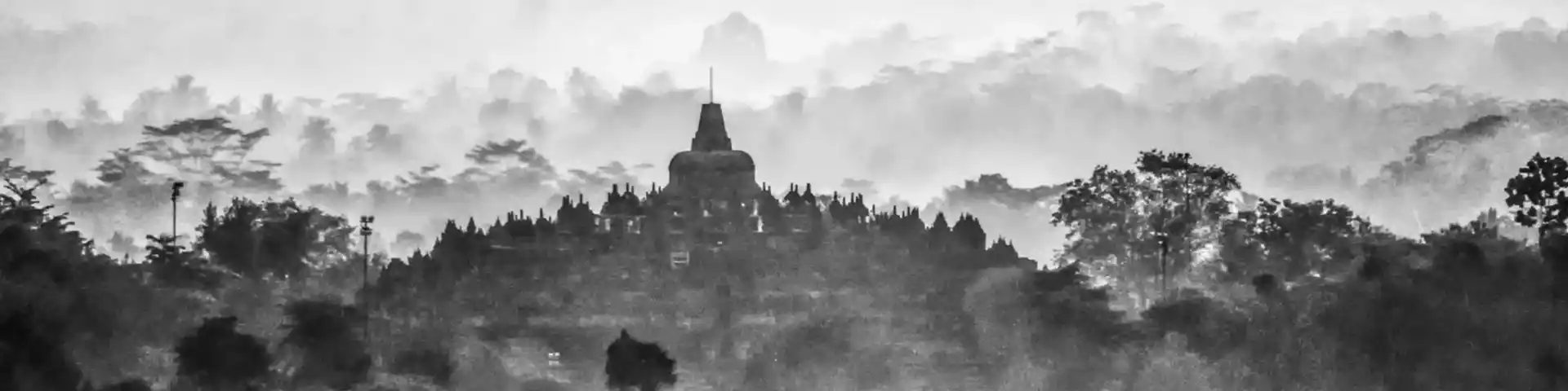 - Top of Borobudur Temple, offering a stunning view of the surrounding landscapes and Mount Merapi in the distance.