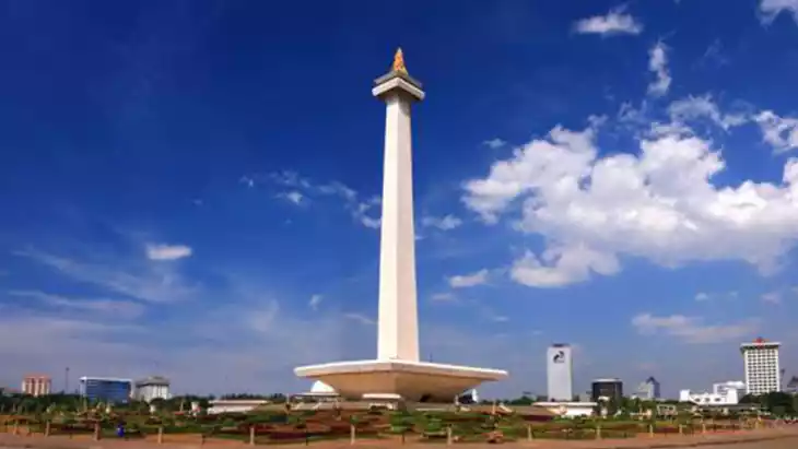 In the center of the square stands the Indonesian National Monument, which is the tallest building in Jakarta and the symbol of the city. The surrounding streets are wide and neat, dotted with flowers, plants and trees, and full of greenery.