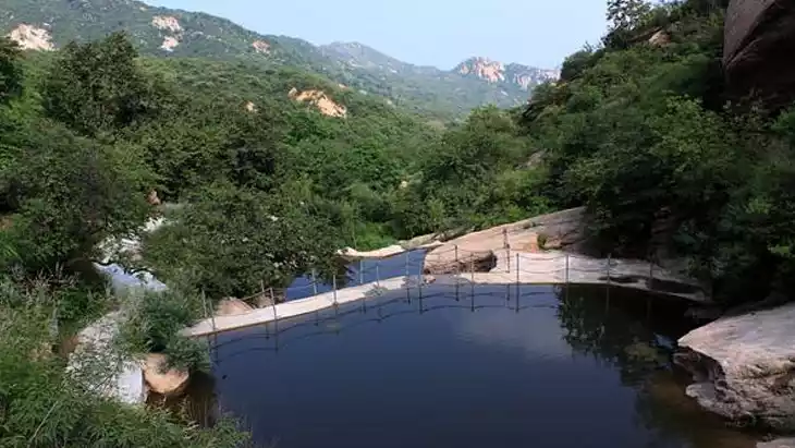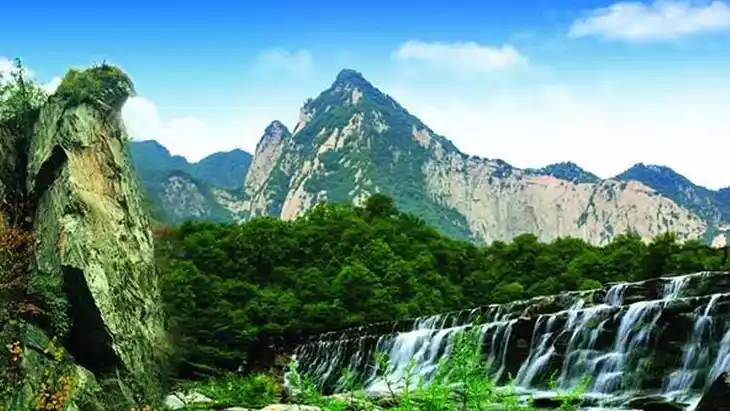 China's most distinctive mountain scenic area. Its South Peak, Falling Wild Goose, West Peak, Lotus, and East Peak, Chaoyang, stand in a triangular formation, reaching high into the clouds, known as the "Three Peaks Beyond Heaven." "The Immortal Palm of Mount Hua" is one of the Eight Scenic Spots of Shaanxi.