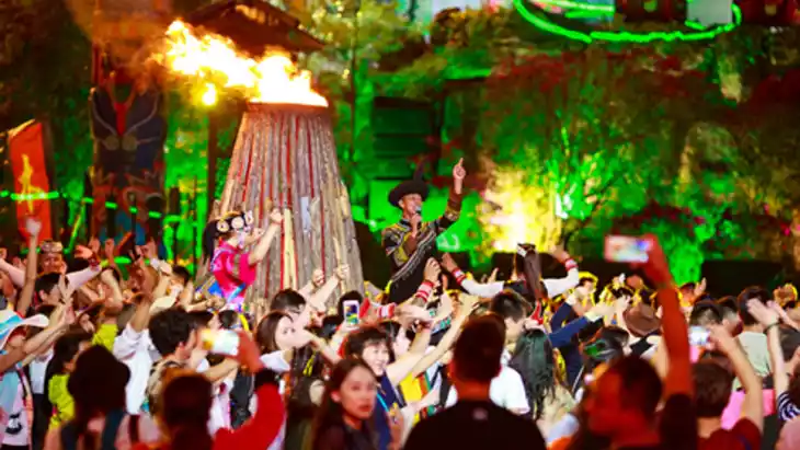 Summer: June to August: Flowering season and rainy season. Wildflowers bloom everywhere, creating seas of flowers in the fields. Various lakes also reach peak water levels, making this the most beautiful time of year. However, the rainy season is also often cloudy and foggy, making it difficult to see the true beauty of the snow-capped mountains. The Naxi Torch Festival begins on the 24th day of the sixth lunar month, when torches are lit at the entrances of every household in the ancient city.