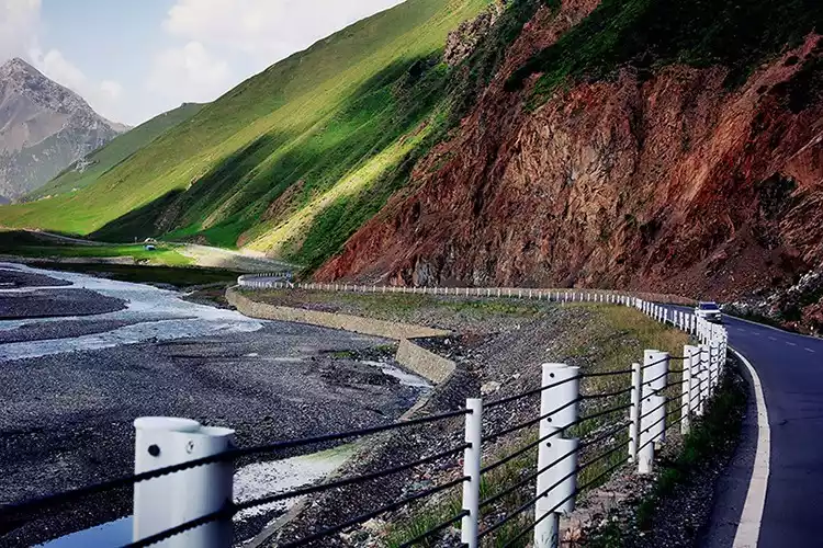 The Karakoram Highway has a lowest altitude of 1,154 meters and a highest altitude of 4,733 meters. The terrain is undulating, crossing mountains and ridges and following rivers, and the natural landscape is extremely rich.
