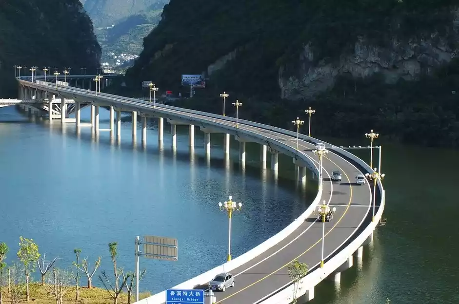 "In Zhaojun Village, the hometown of the beauty, a long dragon lies on the ripples on the water." In Xingshan County, Hubei Province, the hometown of Zhaojun, there is such a beautiful water highway. In order to avoid mountain opening and deforestation and protect the ecological environment, the entire kilometer road is built in the canyon stream, like a jade belt, and just like a swimming dragon, lingering and winding on the Xiangxi River.