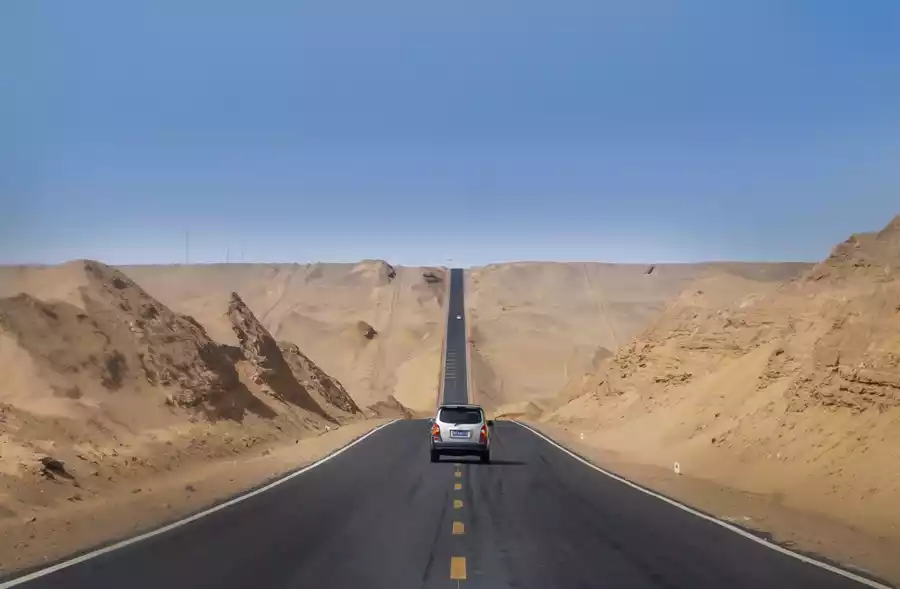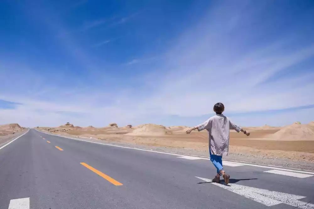 Along the highway are wind-eroded Yardang landforms, and the highway extends straightly. There are few vehicles along the way, giving it a desolate feeling, making it very suitable for shooting highway blockbusters.