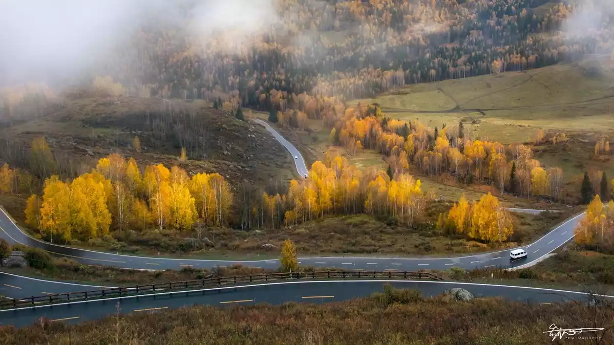 The Hemu Scenic Area Highway begins at Tershahan in Kanas Scenic Area and ends at Hemu Village, covering a total length of approximately 49 kilometers. The Hemu Highway is described as "a road within the scenery, and scenery along the roadside." The winding mountain road ascends through the woods, with wooden villages, grasslands, pastures, rivers, and forests interwoven along the roadside. Ten viewing platforms are located along the way, ensuring you don't miss any of the breathtaking scenery.