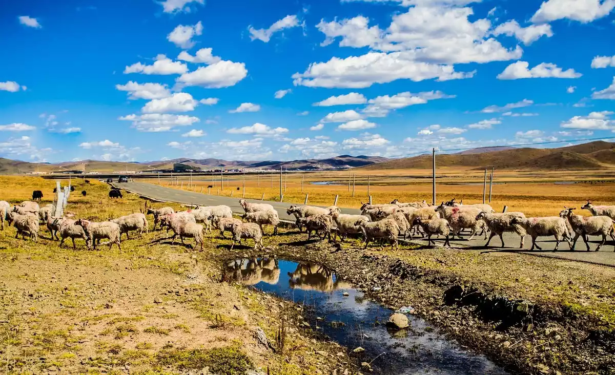 The Langchuan Highway, known as China's "Route 66," connects Chuanzhusi and Langmusi, practically traversing the Zoige Grassland. Unlike the desolate Route 66 in the US, the Langchuan Highway is vibrant with verdant greenery in the summer and golden in the autumn, with clear skies and clear clouds. With excellent road conditions and stunning scenery, it's a perfect choice for a family road trip.