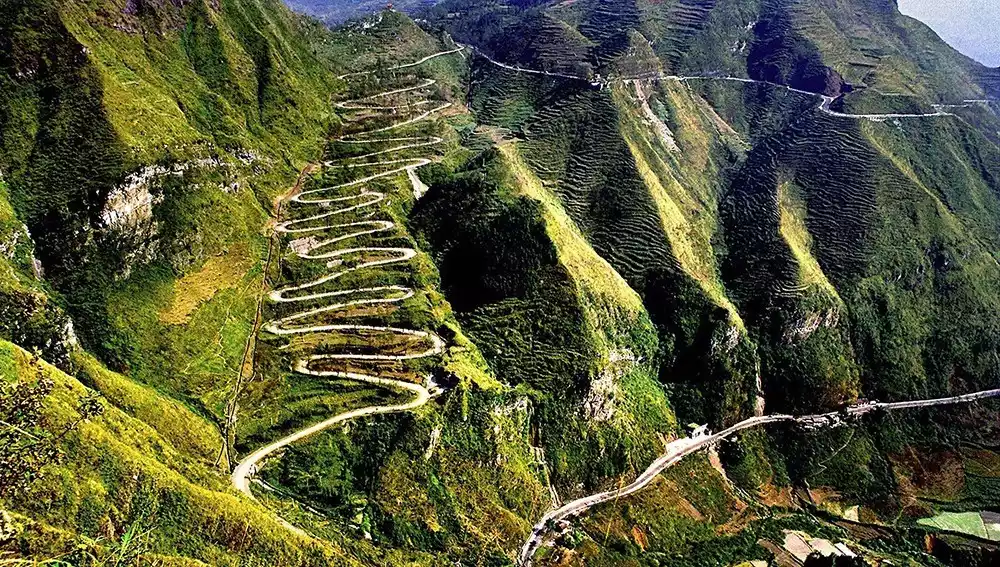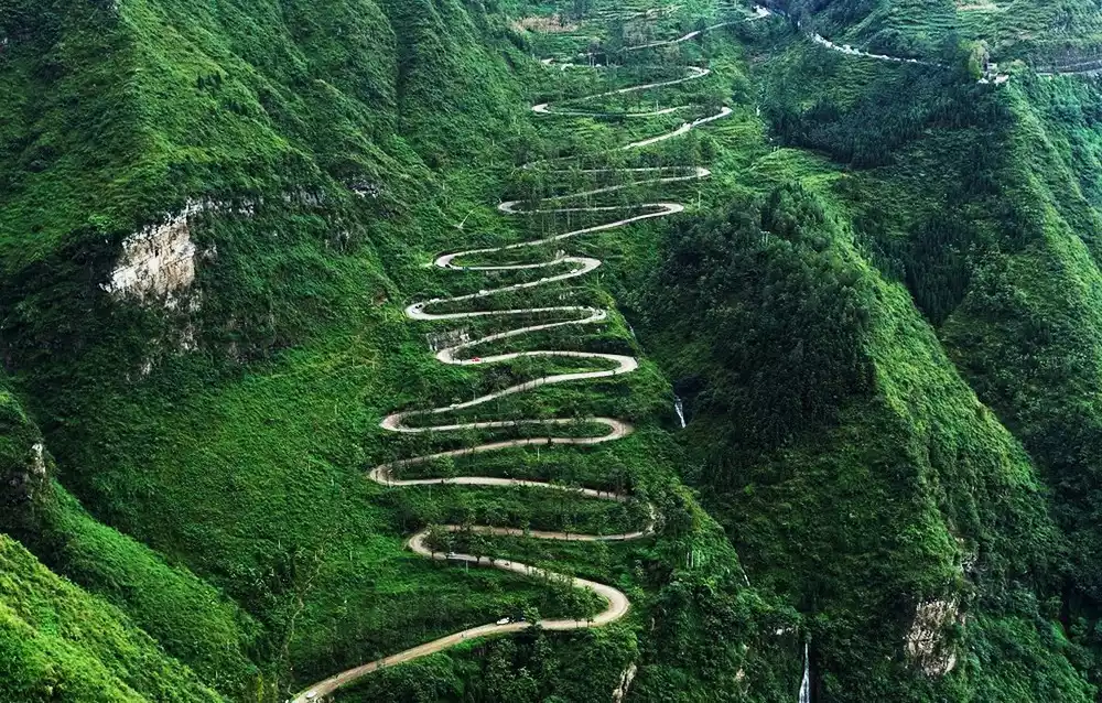 The Twenty-Four Turns of Qinglong is located in Qinglong County, Qianxinan Prefecture, Guizhou Province. The magic lies in the fact that it has 24 turns in just 4 kilometers. It is a famous historical highway during the War of Resistance Against Japanese Aggression, known as "Yaguan" in ancient times. It is majestic, strange, dangerous and steep, with the momentum of one man guarding the pass and ten thousand men unable to open it.