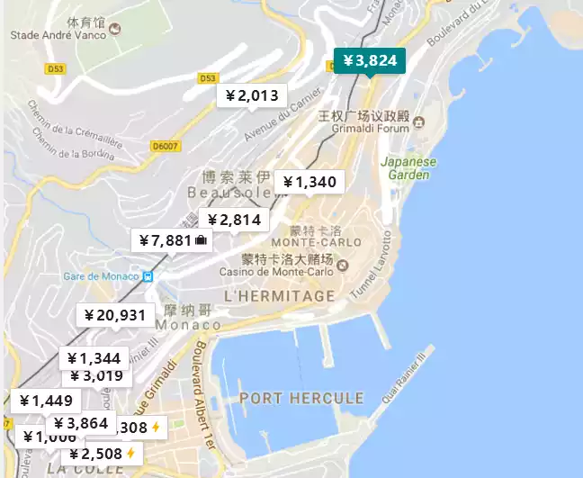 Let’s first take a look at the accommodation prices in Monaco, all for one night.
