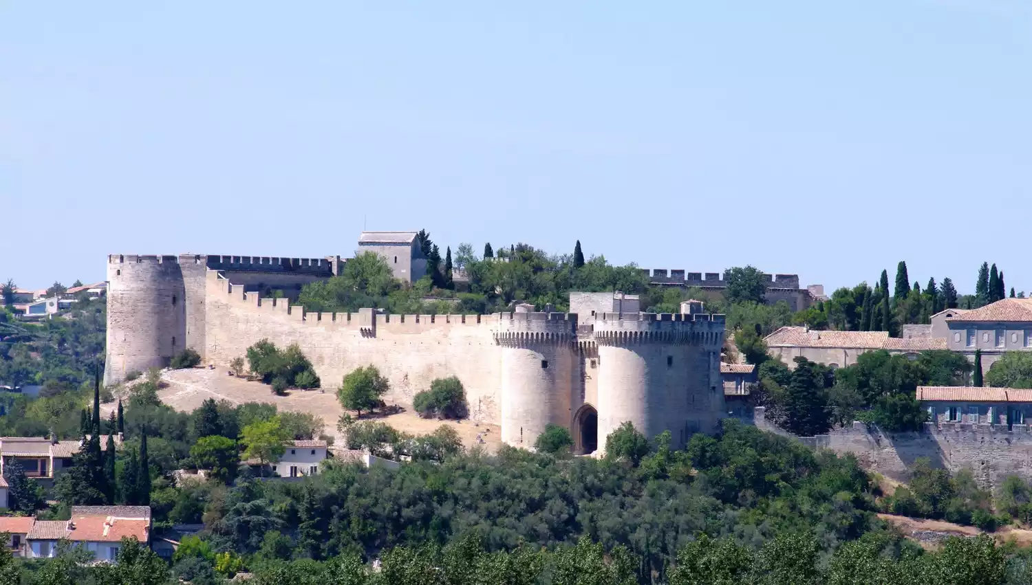 Construction of the Château d'André, a UNESCO World Heritage Site, began in the late 13th century. King Philippe, the handsome king, commissioned its construction to demonstrate the Empire's power over the Avignon Papacy, and it was finally completed during the reign of Charles V.