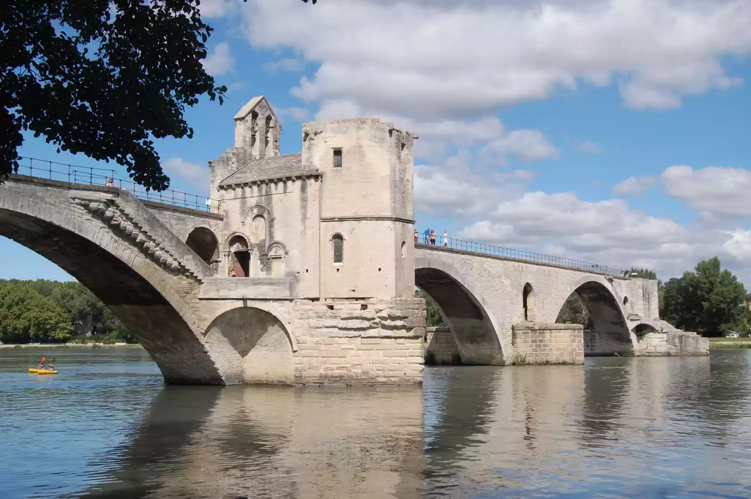 The Pont Saint-Bénézet, also known as the Pont d'Avignon, is well-known for its construction. Many people have heard the legend of its construction: a shepherd named Saint-Bénézet, inspired by divine inspiration, decided to build a bridge over the Rhône River. He single-handedly lifted a massive stone, too heavy for dozens of men to lift, and placed it at the point where he wished to begin construction. This bridge greatly facilitated travel between Spain and Italy for pilgrims and merchants, as it was the only way to reach the sea from Lyon at the time. The French folk song "On the Bridge of d'Avignon" is set here.