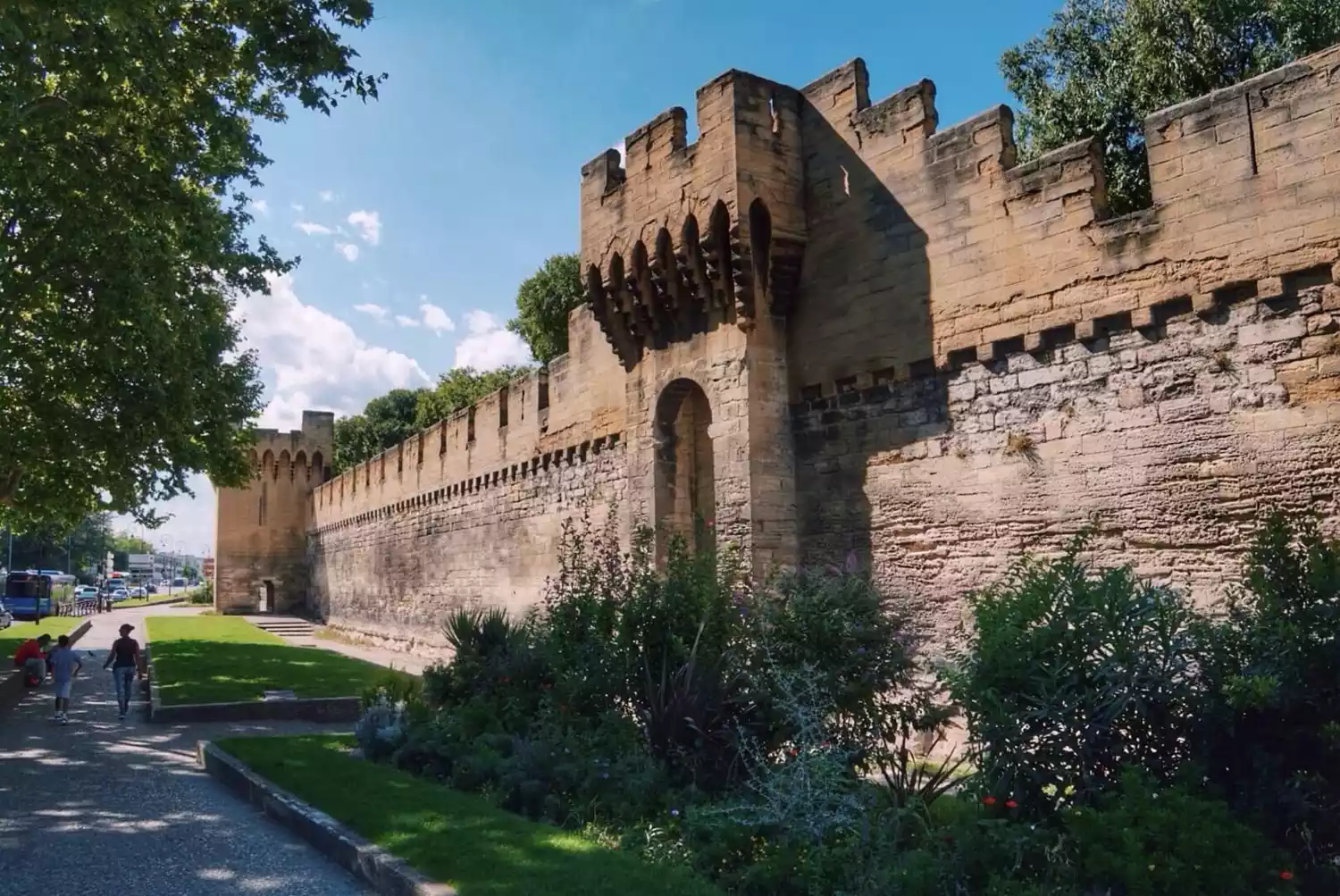 Avignon's ancient city walls are a striking sight. 5,000 meters long, they are built of massive ashlars, creating a sturdy and massive structure. The battlements, towers, and gates are all intact. Built in the 14th century and rebuilt in the 19th, the walls bear the marks of rainwater, lending them a sense of weathered beauty. Strolling through the narrow streets, you can hear the clinking of glasses from restaurants and cafes, evoking a relaxed and peaceful atmosphere.