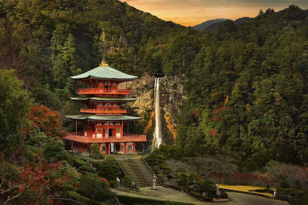 Nachi Falls is located in Higashimuro District, Wakayama Prefecture, Japan. It's considered one of Japan's three most famous waterfalls, along with Kegon Falls and Fukuroda Falls. While the falls themselves are relatively small, perhaps not comparable to China's Huangguoshu Falls, the stunning backdrop of the three-story pagoda creates a truly iconic photo opportunity—the waterfall and temple complementing each other in the distance. It's a truly picturesque sight that's sure to make your visit worthwhile.