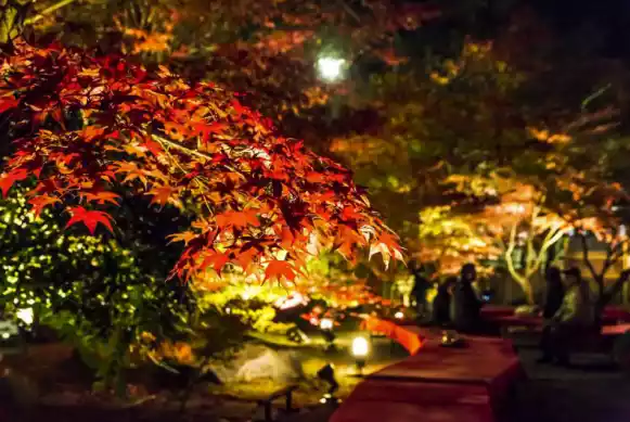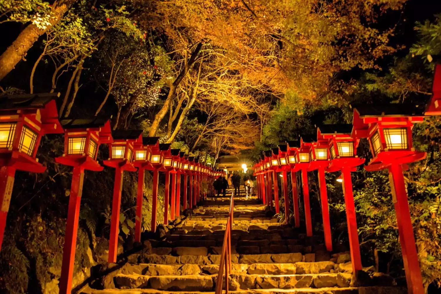 Kifune Shrine also boasts a rare night display of maple leaves with lanterns in Japan. The Eizan Electric Railway will turn off its lights and slow down while traveling through the red leaf tunnel. Lanterns will be lit at Kifune Shrine and nearby areas, and the light and shadows of the lanterns will dance with the maple leaves, creating a unique experience of ancient Japanese style.