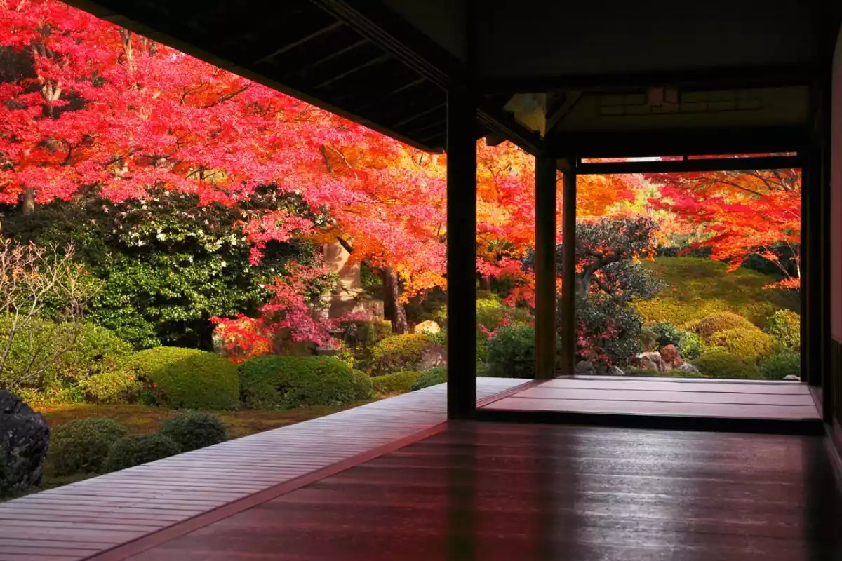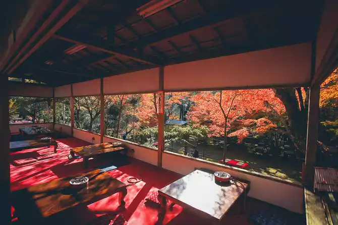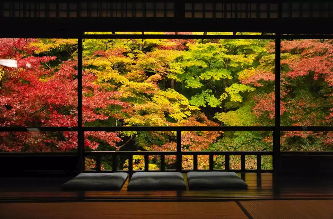 Sitting on the floor, the scenery from these two windows changes with the seasons, with the red leaves being the most famous. Many people travel here from far and wide just to experience firsthand the simplicity and breadth of Zen culture reflected in these two windows.