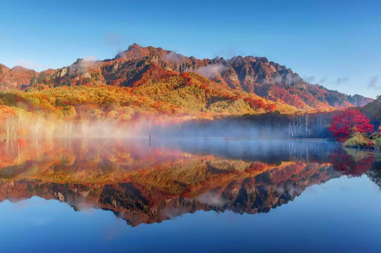 Misashika Pond is known as God's overturned dyeing pan. No need to travel all the way to Hokkaido's Blue Pond. Misashika Pond, nestled at the foot of Mount Yatsugatake, is considered Japan's most beautiful natural pond. Sunlight perfectly illuminates the trees on the opposite bank, adorning the lake with vibrant colors that make you wonder if the scene before you is real.