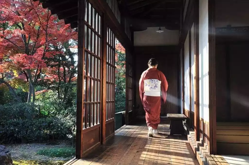 The biggest highlight here is of course the view of the red leaves in the garden through the windows on the second and first floors. The maple trees have graceful branches and elegant postures, and various colors penetrate each other, just like an Impressionist painting. The ground is covered with moss, stone lanterns and streams, and the artistic conception is beautiful.