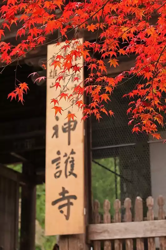 Jingo-ji Temple is a temple located in Ukyo Ward, Kyoto City, Kyoto Prefecture, Japan. It is the main temple of the Koyasan Shingon sect. The main gate of Jingo-ji Temple has an ancient atmosphere, quite different from the bustling temples of Kyoto. Inside, it's deserted, and the grounds are paved with fine sand and gravel rather than paved stone, giving it a secluded feel.