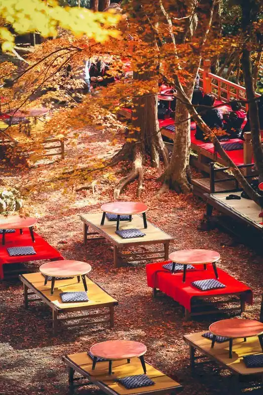 Jingo-ji Temple is far from the city center, so it's rarely visited by tourists. If you catch the earliest bus and stroll up the mountain approach early, you'll find only a few tourists sitting in the teahouses, enjoying tea and chatting. Then, against the backdrop of vast maple forests, dotted with red paper lanterns and bright red rugs, do you want to sit down and become part of the painting?