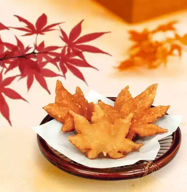 Maple leaf tempura is a famous Japanese confectionery. It is not made from fresh red leaves of the same year, but needs to be picked a year in advance, washed and placed in a wooden barrel, pickled with salt. In the autumn of the following year, it is coated with flour, sprinkled with fragrant sesame seeds, and fried. It can be enjoyed with tea. The gentle sweet fragrance has a mellow aftertaste, which is the autumn thoughts that have been accumulated for a year.