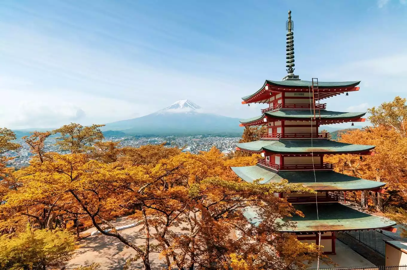 This image, featured on the cover of Fujiyoshida's promotional poster, may be familiar to many, but its origin is less well-known. The photo was taken at Arakurayama Sengen Park, located in Fujiyoshida City. It's one of the most popular tourist spots for Mount Fuji. During maple leaf season, photographers, couples, and all kinds of people flock to the park to capture the breathtaking scenery, both of Mount Fuji and the crimson leaves.