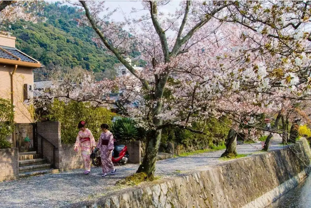 Maruyama Park, Kyoto's oldest park, is home to nearly 900 cherry trees, the most famous of which are the Gion weeping cherry trees, which have been passed down from generation to generation since 1866.