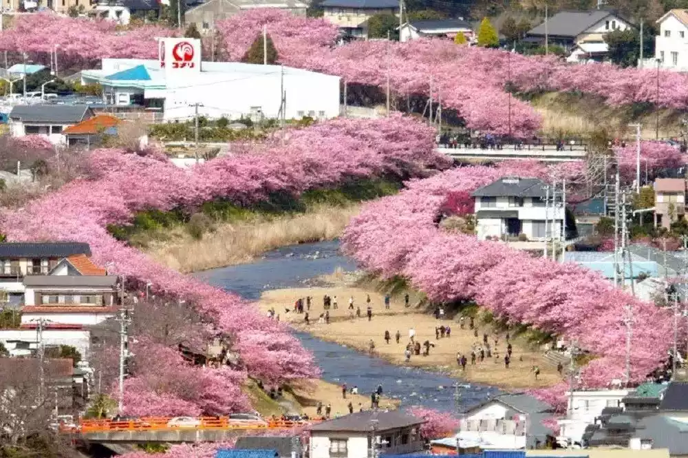 The Izu Peninsula's warm climate makes Kawazu cherry blossoms the earliest to bloom in the Japanese archipelago, beginning in early February and continuing through mid-March, a month-long bloom. The Kawazu Cherry Blossom Festival, held annually in Kawazu Town, Kamo County, draws crowds of tourists during the blooming season, from February 10th to March 10th.