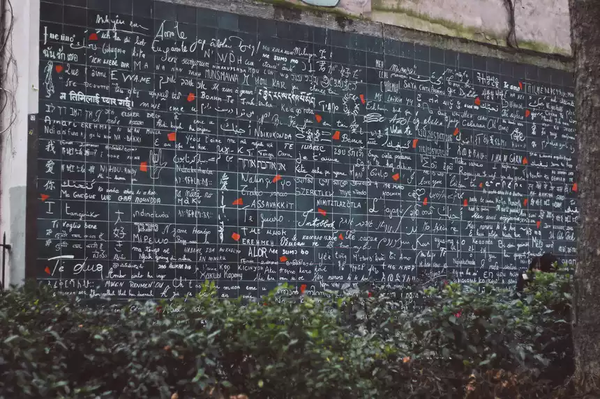 The Wall of Love is located in a small street park halfway up the Montmartre hill in northern Paris. The blue tiles are covered with "I love you" in over 300 languages. The construction of the Wall of Love actually has a deeper meaning. Baron said, "In a world of violence and individualism, walls divide people. However, a simple and sincere "I love you" can often overcome misunderstandings and tear down barriers of division. The Wall of Love provides a place for people of different nationalities and languages to gather and live in harmony."