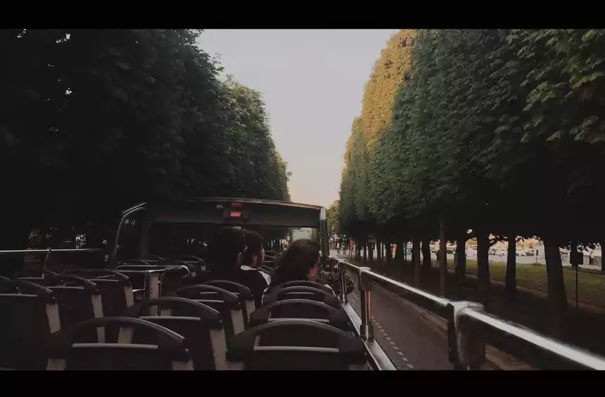 I recommend the night route. If you go in the summer, it's still light at 8:30 pm, so you can take a two-hour bus trip from dusk to night in Paris. At 10:00 pm, the Eiffel Tower will light up. I heard that if you make a wish when the tower is lit, your wish will come true.