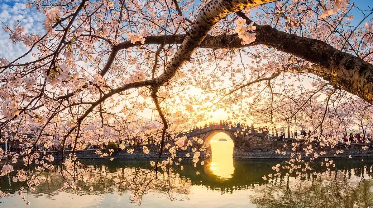 Changchun Bridge: This is the place with the densest concentration of cherry blossoms in Yuantouzhu. The cherry blossoms, the small bridge, and Taihu Lake create a most romantic picture of the spring scenery in the south of the Yangtze River.