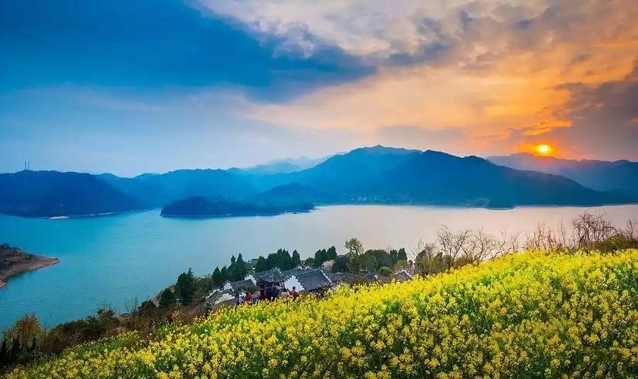 Meng Haoran, a poet of the Tang Dynasty, praised the area in a poem: "The lake stretches across Dongting Lake, the river flows into Xin'an Lake, clear." Li Bai, after visiting the area, described it in this way: "The clear stream clears my heart, its waters are a hue unlike any other. May I ask the Xin'an River, how can I see the bottom so clearly? People walk in a mirror, birds fly through a folding screen." The waters of the Xin'an River, regardless of depth, are crystal clear; regardless of season, they are as bright as a mirror. The Xin'an River is at its most beautiful during the blooming rapeseed flowers of March and April and the ripening loquats of mid-May.
