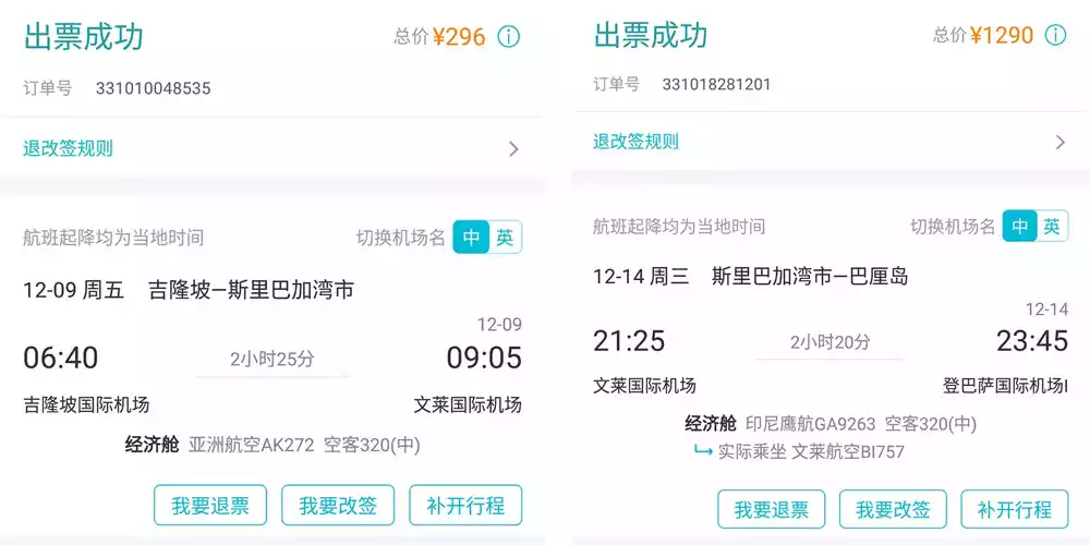 The return flight was to Bali, Indonesia. I originally wanted to transfer in Kuala Lumpur, but the cost did not save much, so I took a Brunei Airlines flight.