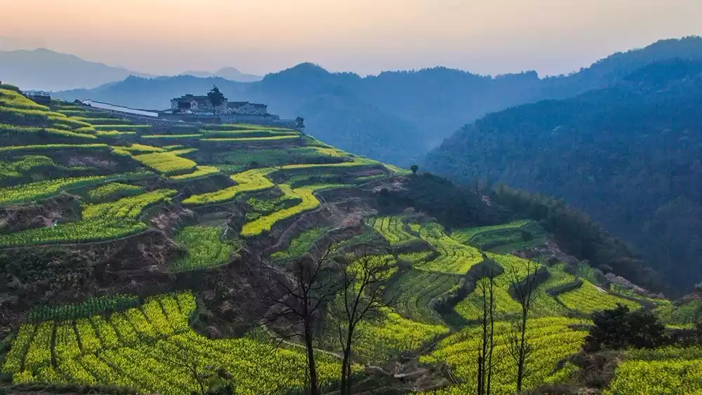 Recommended route reason: Crossing the desertified ridge of Longxu Mountain, you can enjoy both excitement and beautiful scenery, as well as the most magnificent terraced rapeseed flower fields in southern Anhui. Strolling among them, you will realize that spring is a good time.