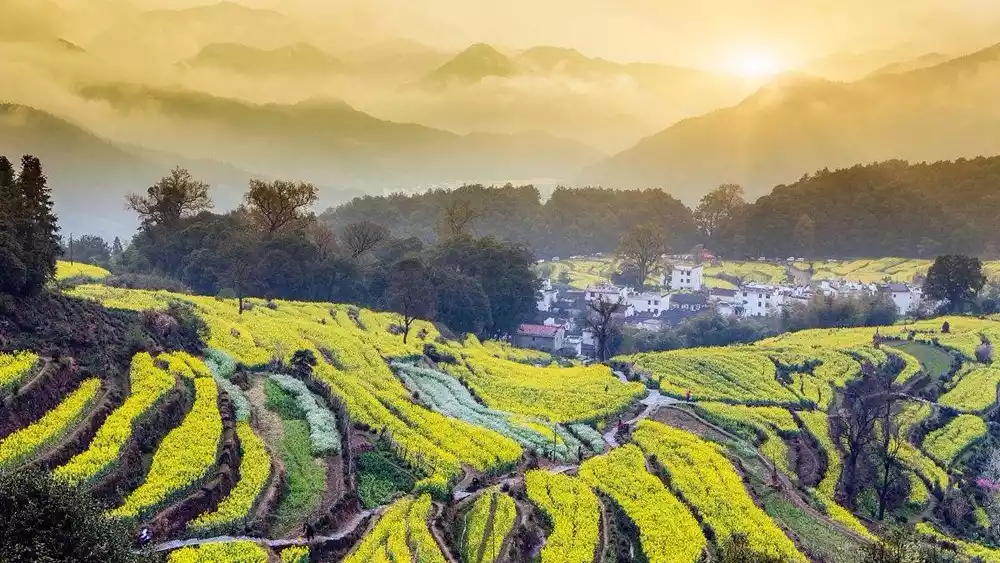 Recommended route: Curling smoke from the village, peaceful and quiet Muli Village; See the ancient Huizhou village in the clouds, and see the rapeseed fields in the green mountains.
