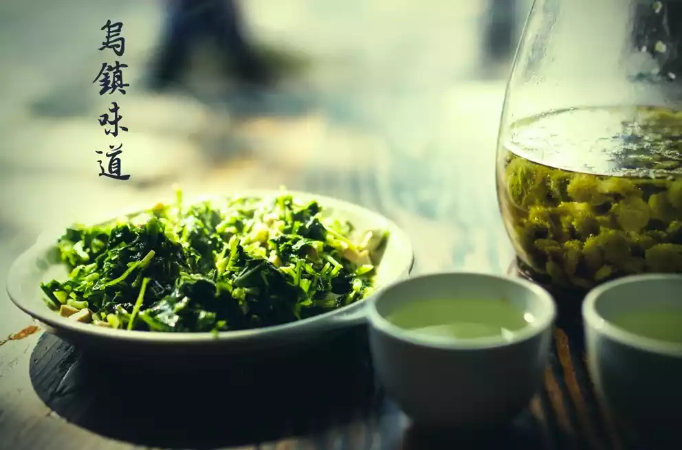 Also known as roasted bean tea, the main raw material is smoked beans, and the auxiliary ingredients include osmanthus, fried sesame seeds, orange peel, shredded radish, perilla seeds, fried cypress seeds, etc., so the people of Wuzhen have the saying of "eating tea".