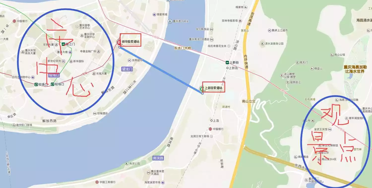 Shangxinjie Cable Car Station: (for traveling from Nanshan Observation Deck back to the city center)