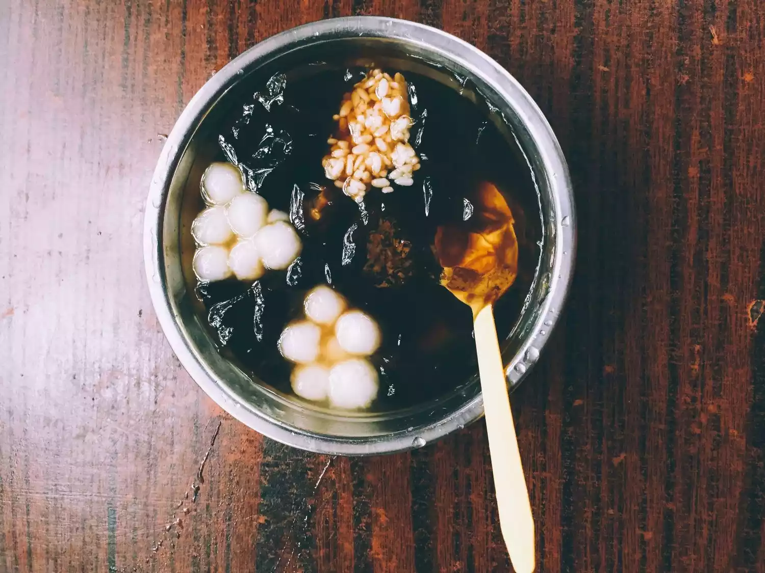 I ordered the signature pickled cabbage rice noodles and three-flavor jelly.