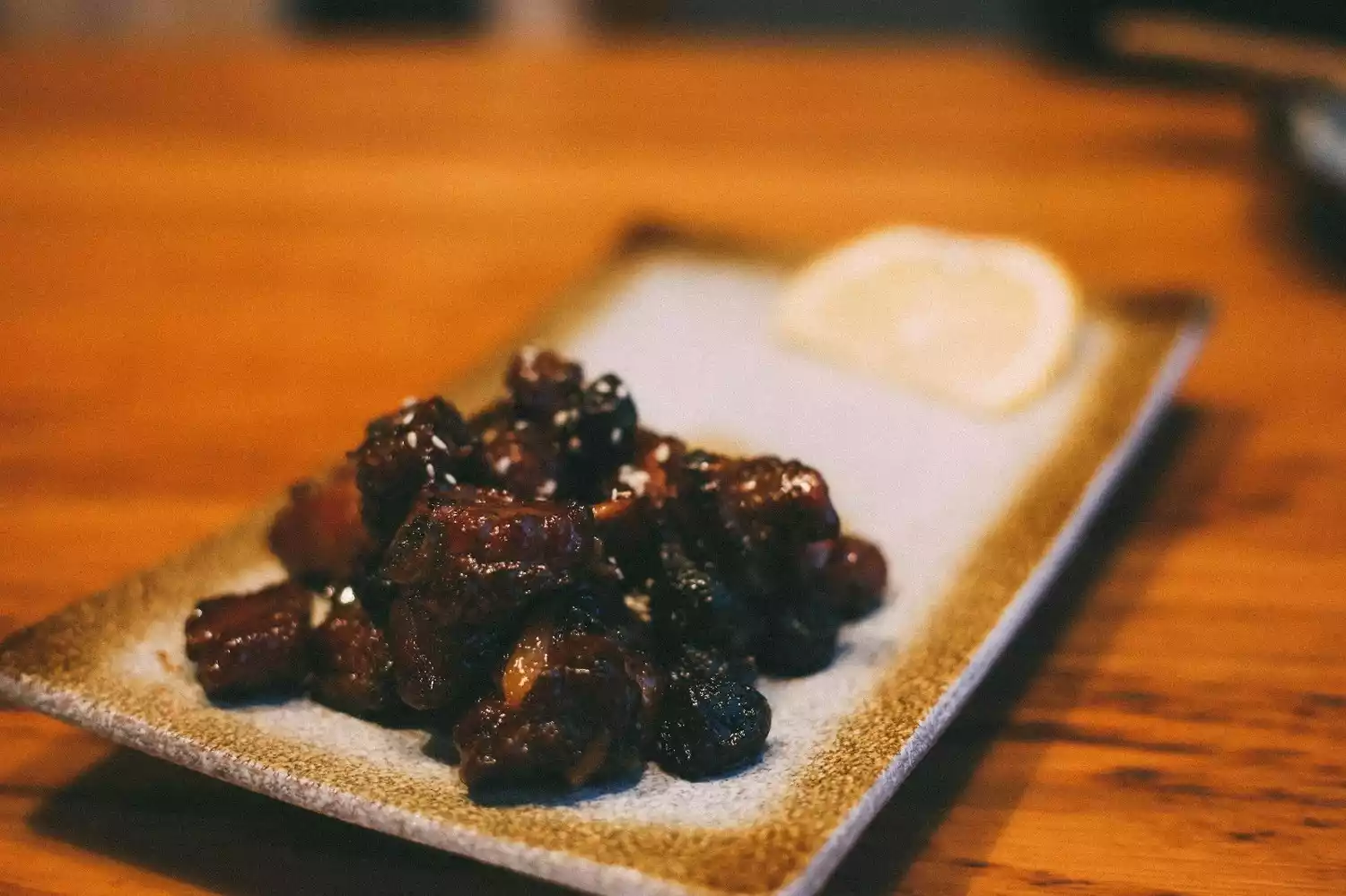 △ "Plum Spare Ribs" appetizer, the sour and sweet spare ribs are delicious and go well with wine.